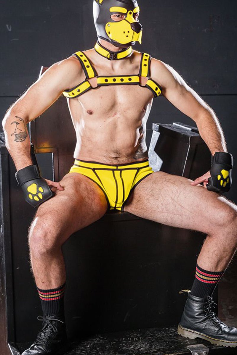 The guys at Mr S Leather’s Puppy Department have been working hard on a new version of their puppy mitts. We are proud to include them in our exciting range of pup gear. Introducing the Open Paw Puppy Glove with yellow paw motif!