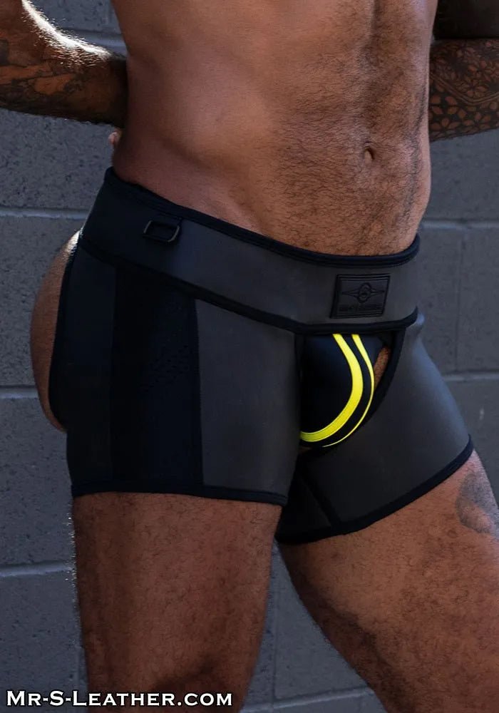 Mr S Leather Neoprene Chap Short Black - SMALL is backordered and will ship as soon as it is back in stock.