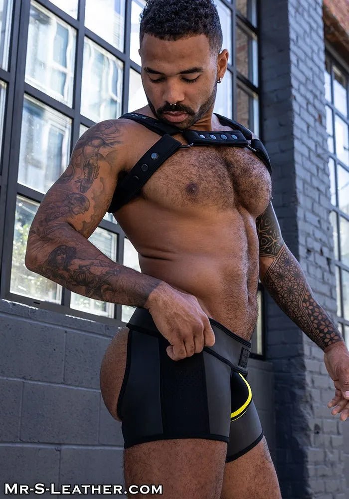 Perfectly frame your package and accentuate your bum with the Mr S Leather Neoprene Chap Short Black! Soft and sexy black neoprene wraps around your thighs in pure fetish fashion and draws all the attention to the jackpot.