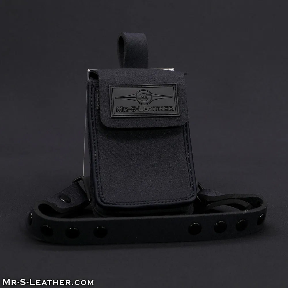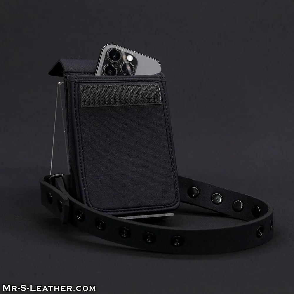 The neoprene design looks great, seamlessly blends into your fetish look and lets you party knowing your valuables are safely held in place. The pouch fits all standard-sized mobile phones and extra pocket on the inside thigh acts as a wallet for your bank cards.