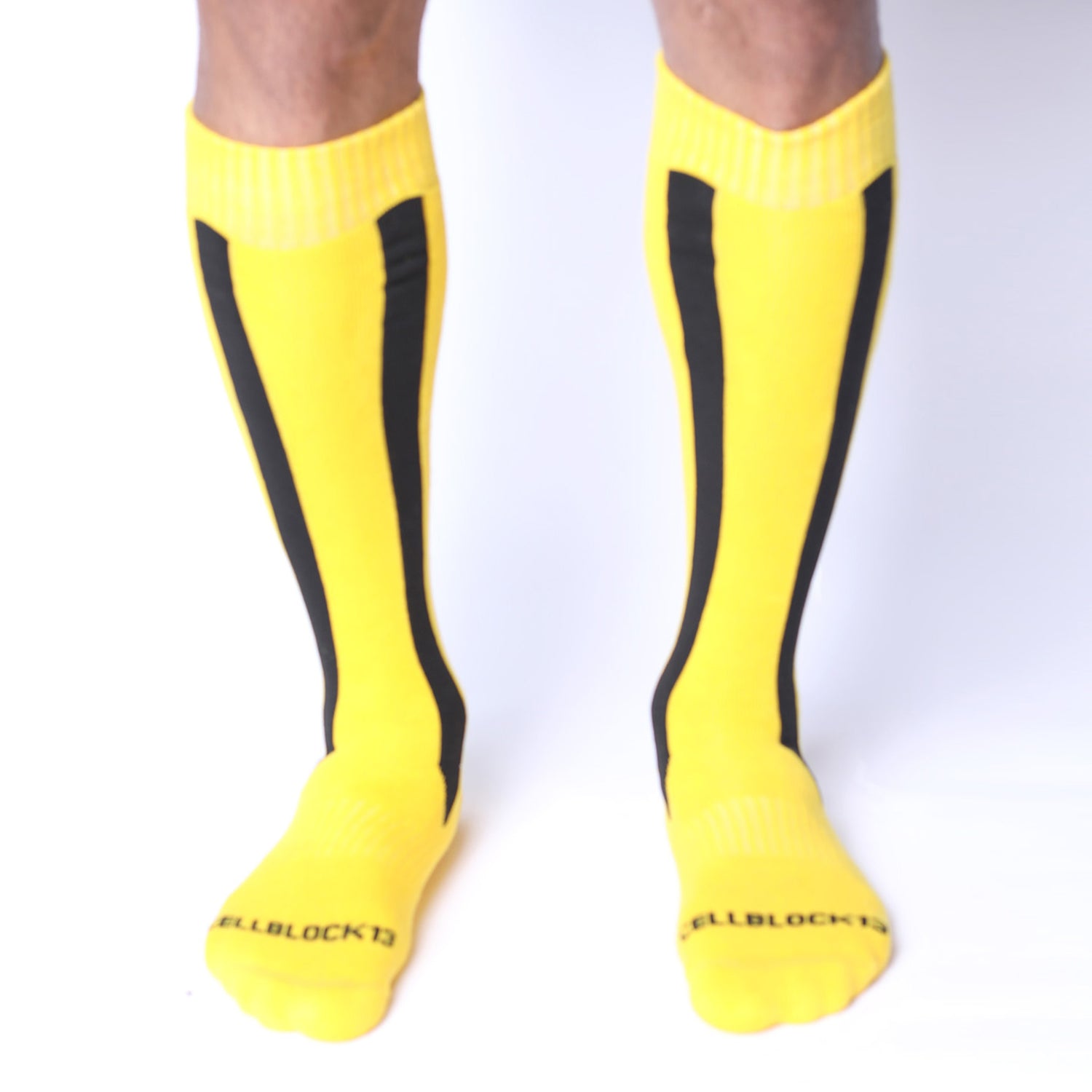 Cellblock 13 Muzzle Up Knee High Socks Yellow is backordered and will ship as soon as it is back in stock.