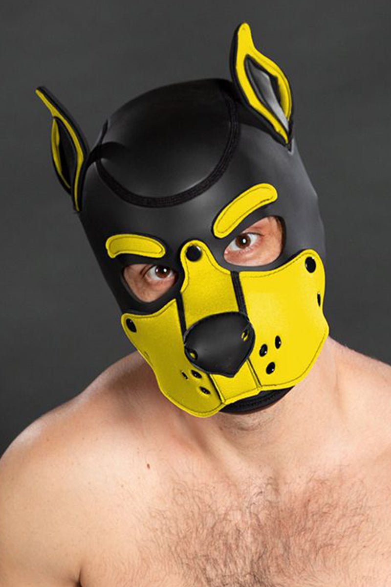 Mr S Leather Neoprene K9 Puppy Hood Black Yellow