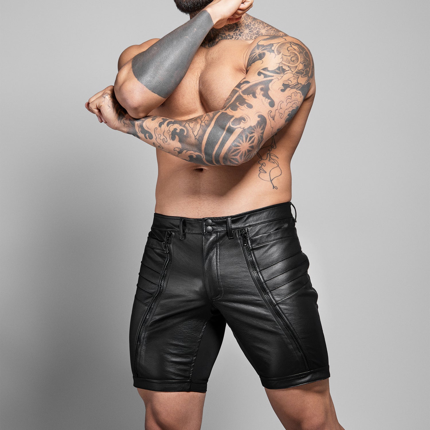 These ROK Biker + Eco Long Zipper Short Black are built to deliver on every level. Texture, function, and pure visual impact. Crafted from soft faux leather, they sit close to the body with stitched panelling that shapes and defines, giving you a structured, confident fit that moves with intent. The double popper waistband and front fly keep things secure while adding to the overall function.