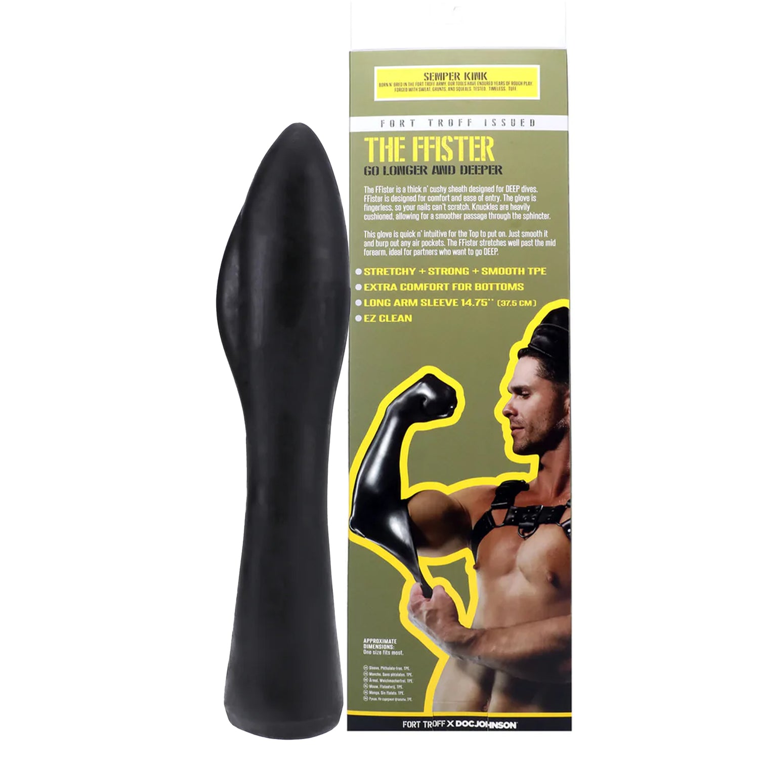 The Ffister Arm Sleeve Black by Fort Troff heightens your fisting experience with an elbow length glove and a mitten end for smooth entry. Get the depth you deserve with this bold and daring accessory. Dare to push your limits and elevate your play with the Ffister Arm Sleeve!