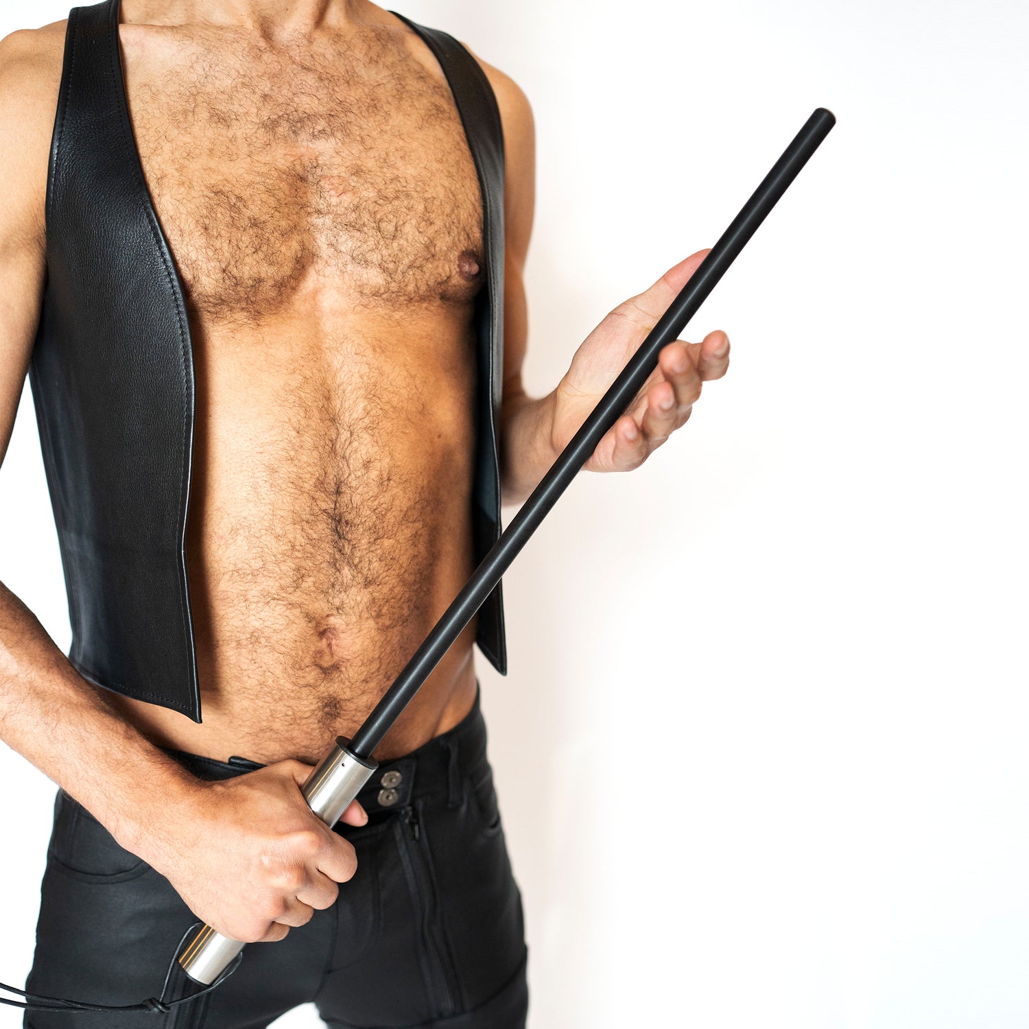 ruff GEAR Heavy Duty Teflon Cane Black Silver is a rigid, striking cane that could really leave some marks on a willling sub. With a girthy handle for an easy grip so you can be in full control, and a long, hard, Teflon cane that snaps, whips and cracks. You'll definitely be reaching for this in the bedroom.