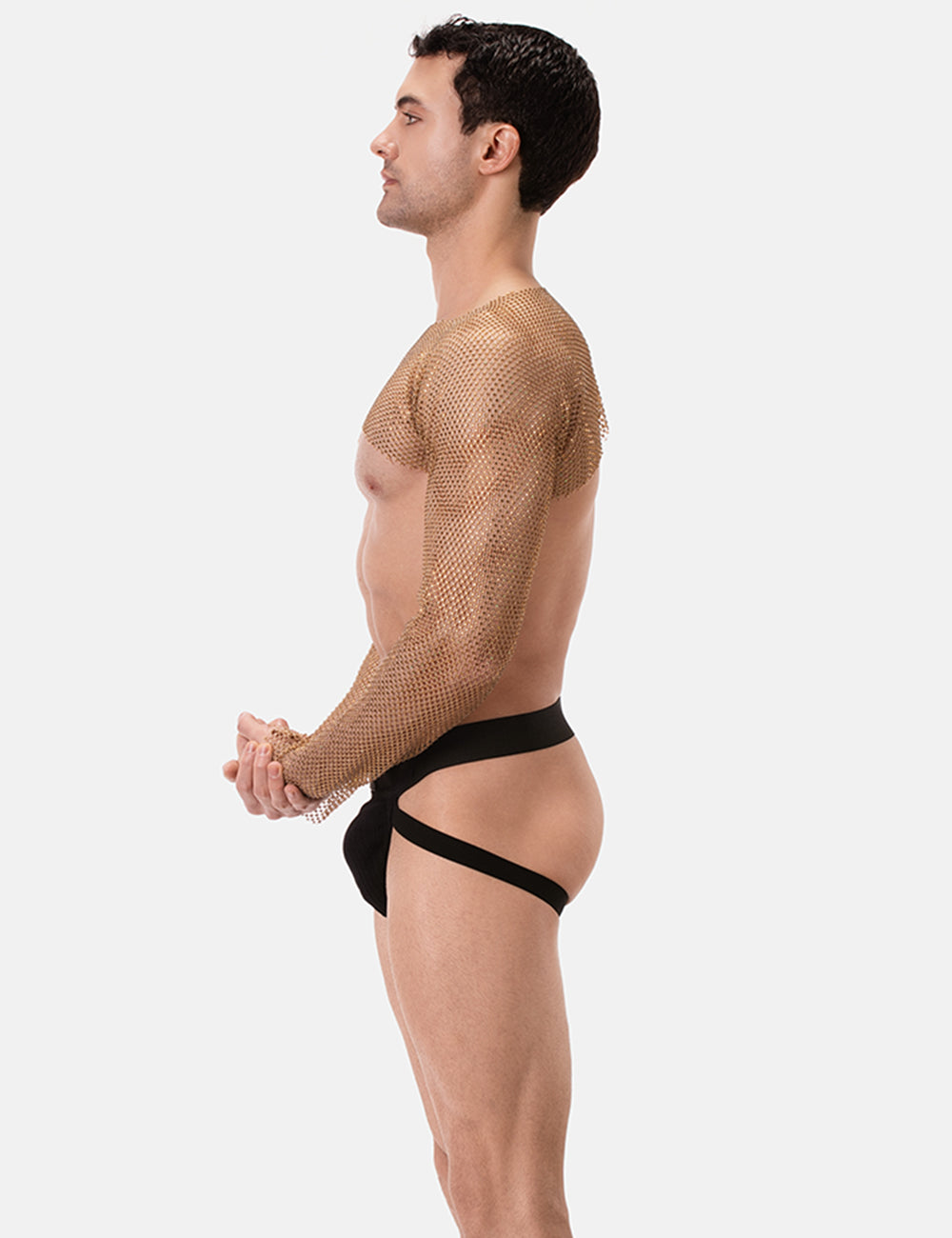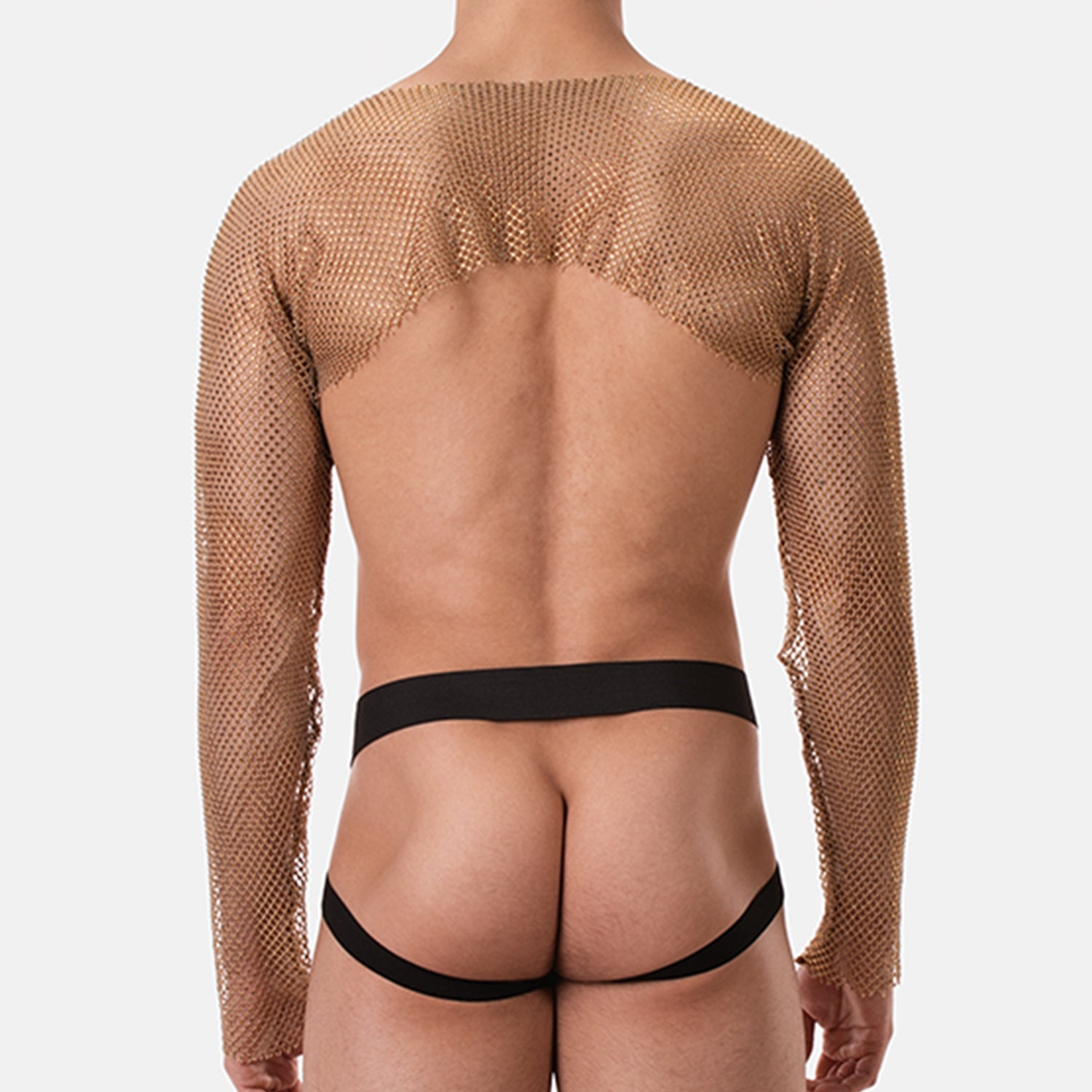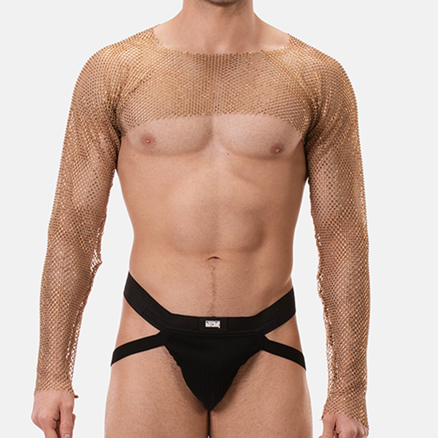 Dare to Bare with the new Barcode Berlin Bolero Blinky Gold! Ooze confidence as you sparkle hard, showing off your torso, framed by what could be thousands of sparkly rhinestones adoring this long sleeved crop top. Covering your arms and shoulders and leaving the rest fully visible - love yourself and let the lightweight mesh, but comfortable weight of the stones create a look like no other. Perfect for festivals, parties, circuits and pride events!