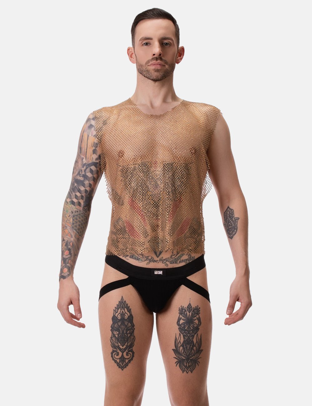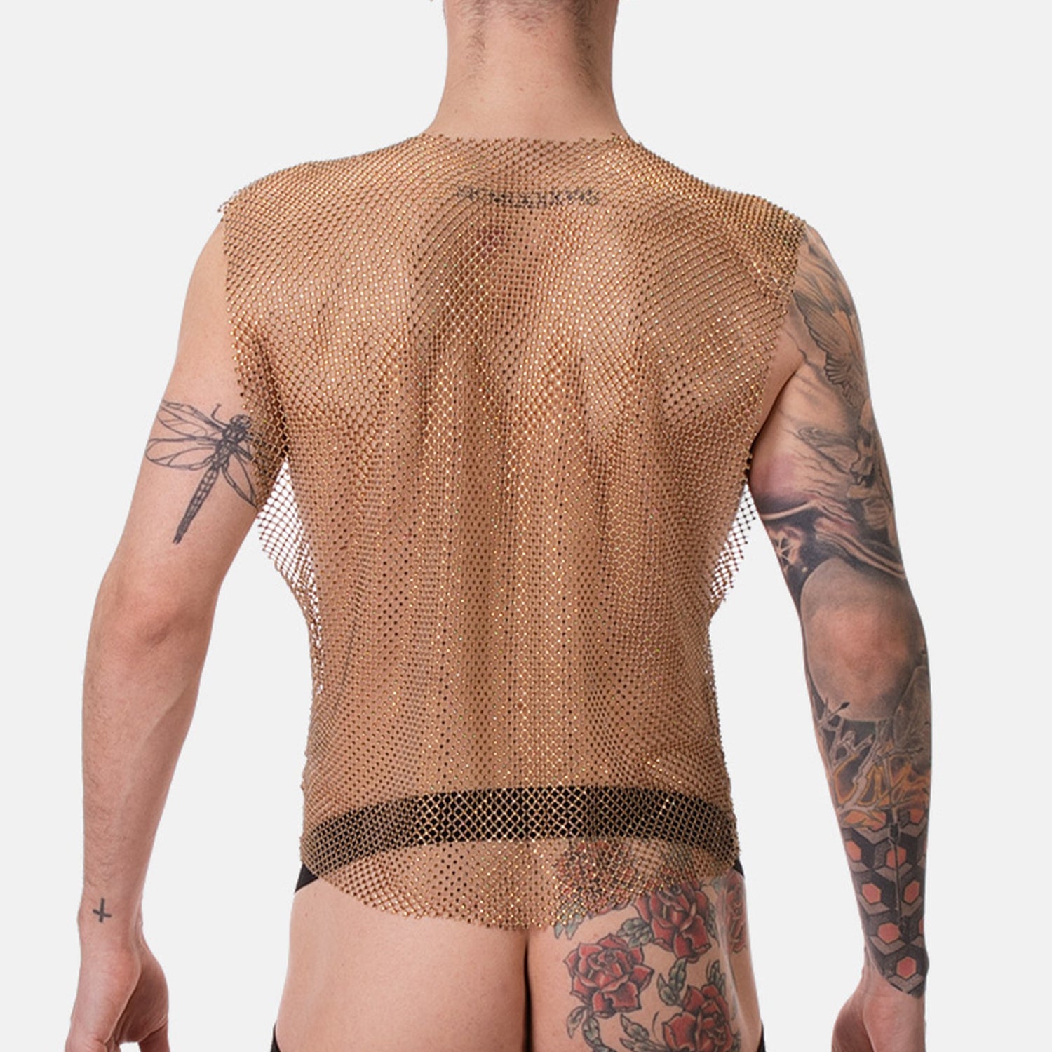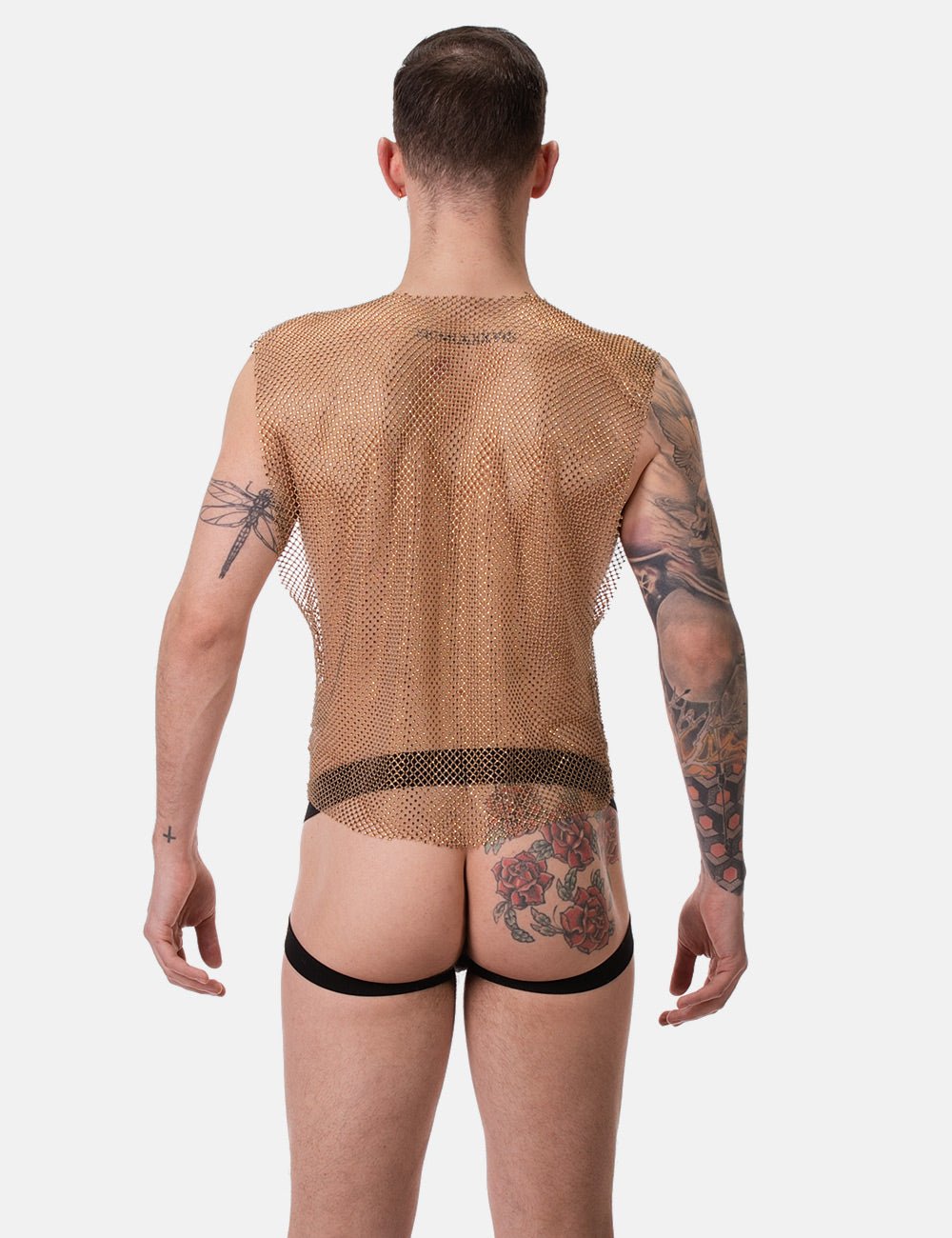 Add instant sexy sparkle to your look with the Barcode Berlin Tank Top Bling Gold! Shimmer in pure fetish style at the club, festival or party in high-quality sparkly mesh that will capture everyone’s attention.