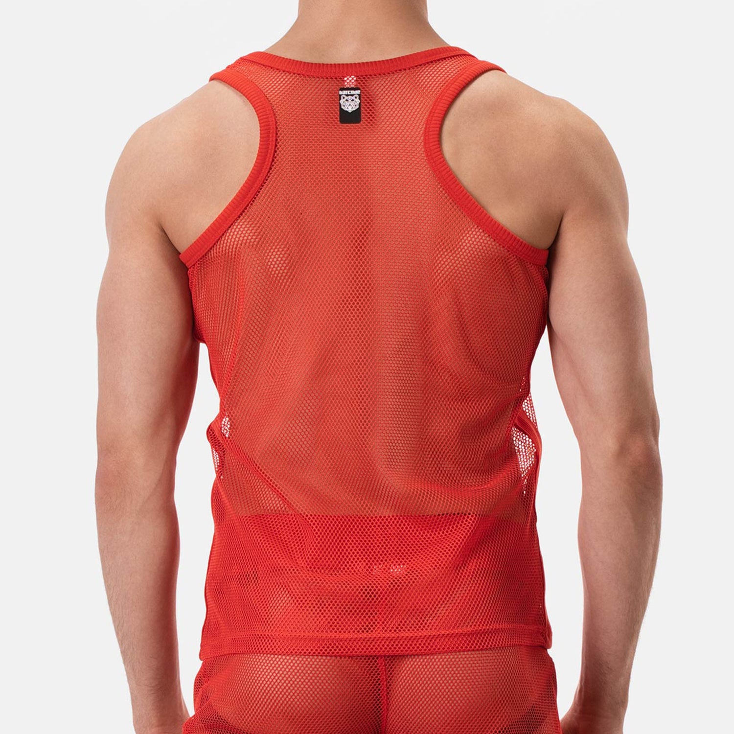 The Barcode Berlin Tank Top Kenan Red combines sporty design with a stylish edge, crafted from lightweight, breathable mesh fabric. Its semi-transparent texture offers a bold look, perfect for layering or wearing alone. Featuring a scoop neckline, wide shoulder straps, and ribbed hems, this relaxed-fit tank extends just below the waist, ensuring comfort and versatility for warm-weather wear or standout casual outfits.