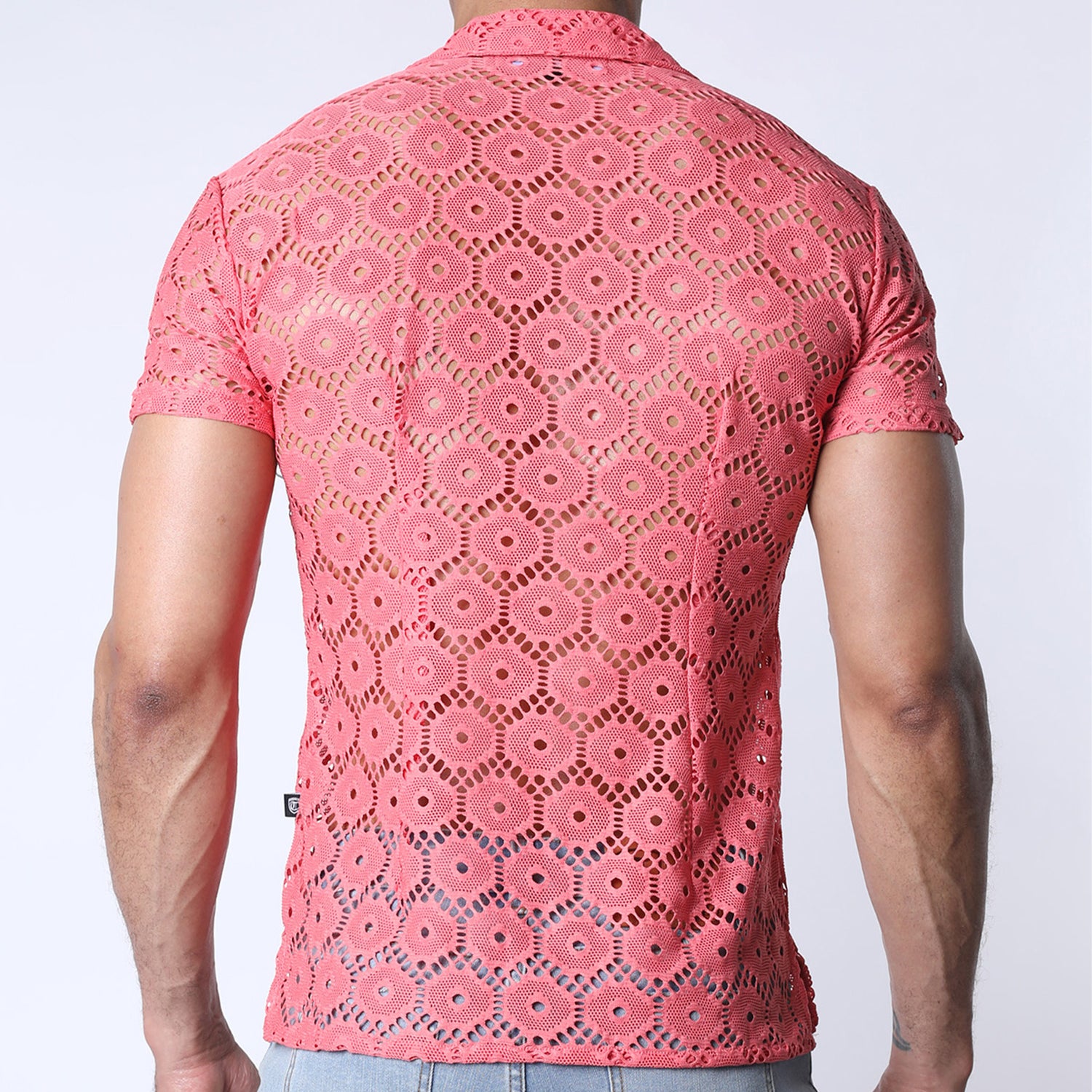 Timoteo Palmero Button Down Mesh Shirt Pink - SMALL is backordered and will ship as soon as it is back in stock.