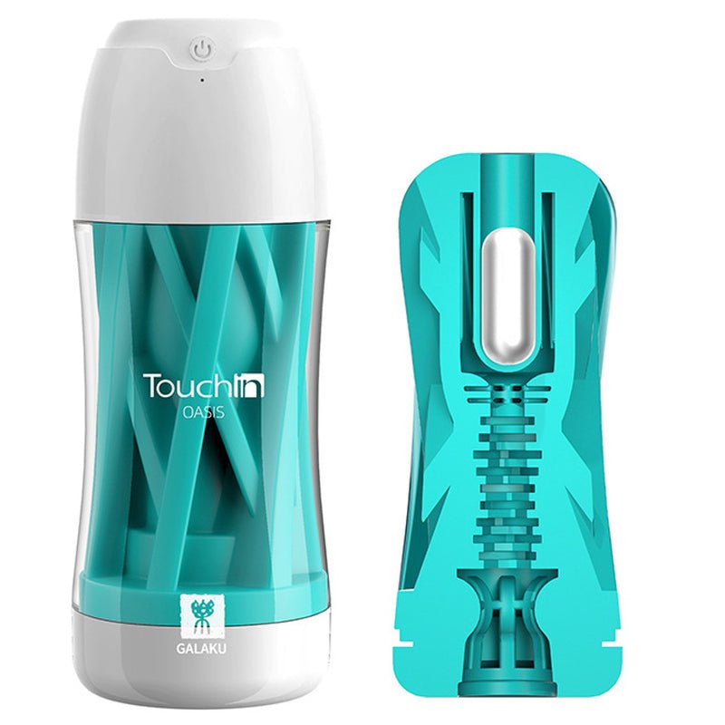 Experience new depths of masturbation sensation with the Touch In Vibration Masturbator Cup Green! Available in five different colours each with a unique inner sleeve texture design, add motorised vibration to your stroking for out of this world pleasure.