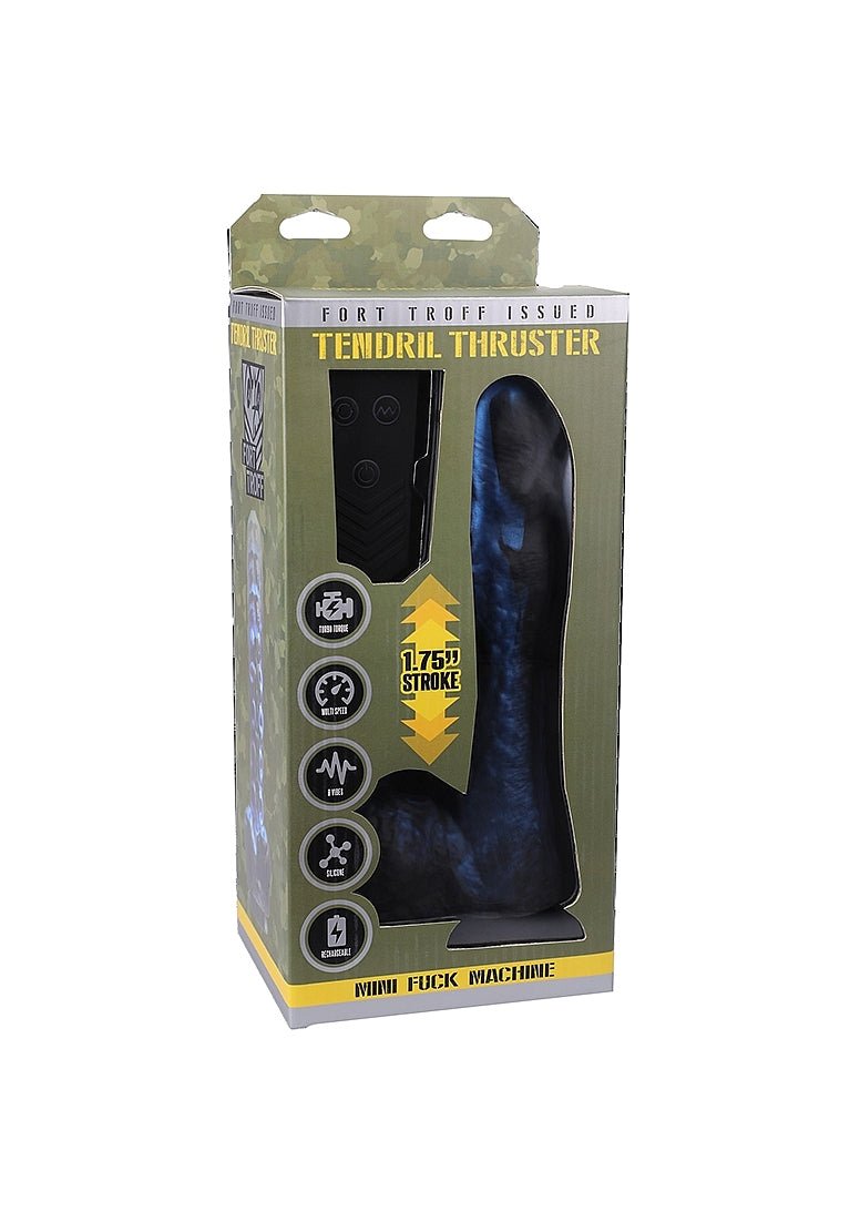 It's not just about the extra length when it comes to the Fort Troff Tendril Thruster Mini Fuck Machine Blue Swirl. Of course, it has the real hard pounding comes with an amazing extra 2" of length with each and every thrust forward - diving deep into your guts like that rough top we all fantasize about. But with extra sensations of the tendril textues running up and down, your fetish imagination can really run wild.