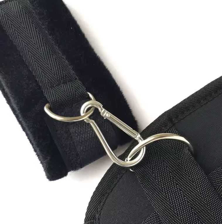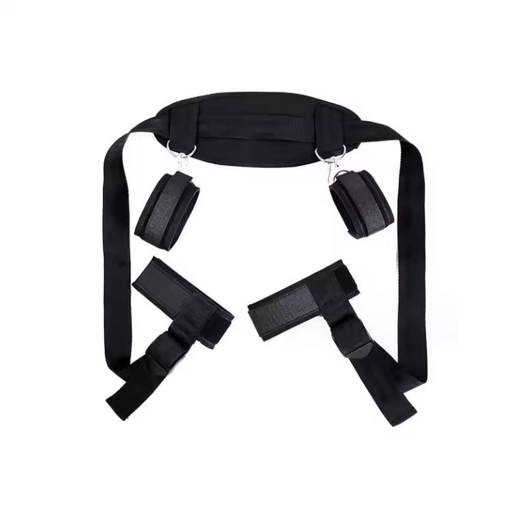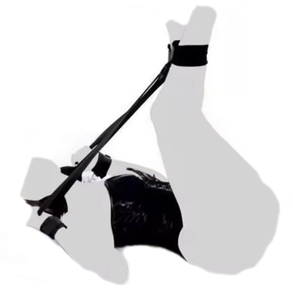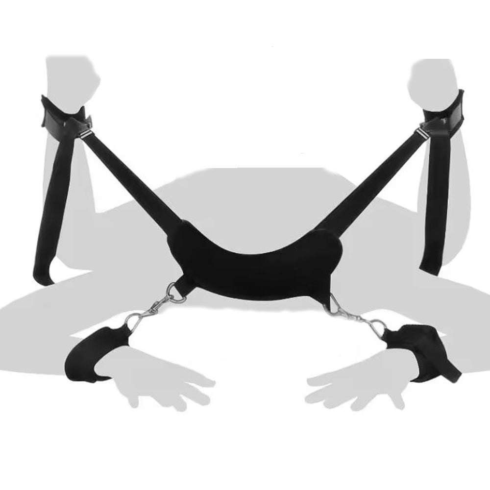 Lie back and open wide with a sling that lets all your wildest fetish fantasies come true. Lie back against the back/neck rest with attached wrist restrains, then slip your ankles into the longer straps that keep you deliciously pinned into position while your partner pleases you.