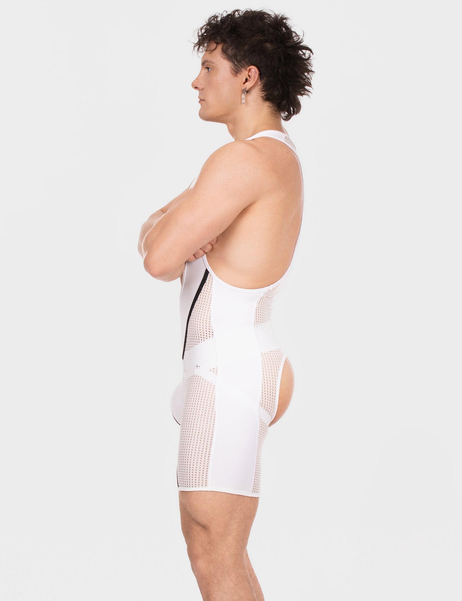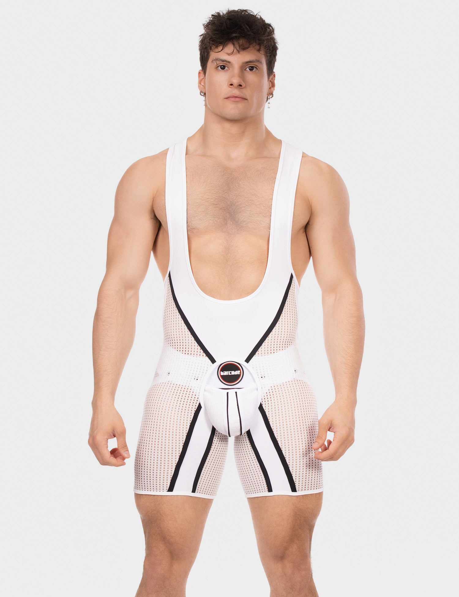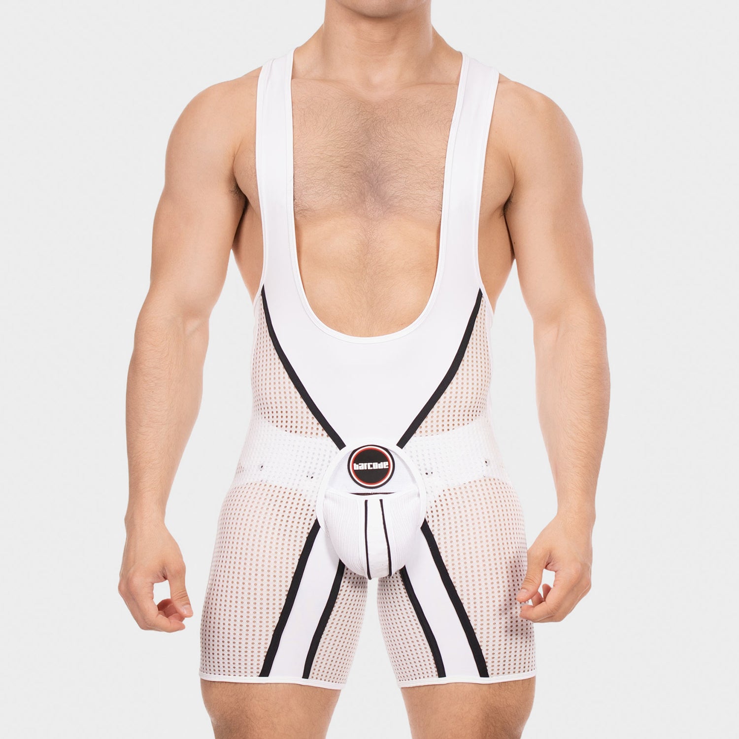 The all-new Barcode Berlin Chaps Singlet Krish White Black gives you a super stylish deep-cut front and wide shoulder straps for a striking, sexy silhouette. Its form-fitting shape highlights your physique, while both solid and mesh panels boost breathability and comfort. Dynamic diagonal stripes highlighted in chosen colourways add a sporty addition, and the mid-thigh-length shorts provide a snug, flexible fit that moves with you, whatever position you find yourself in!