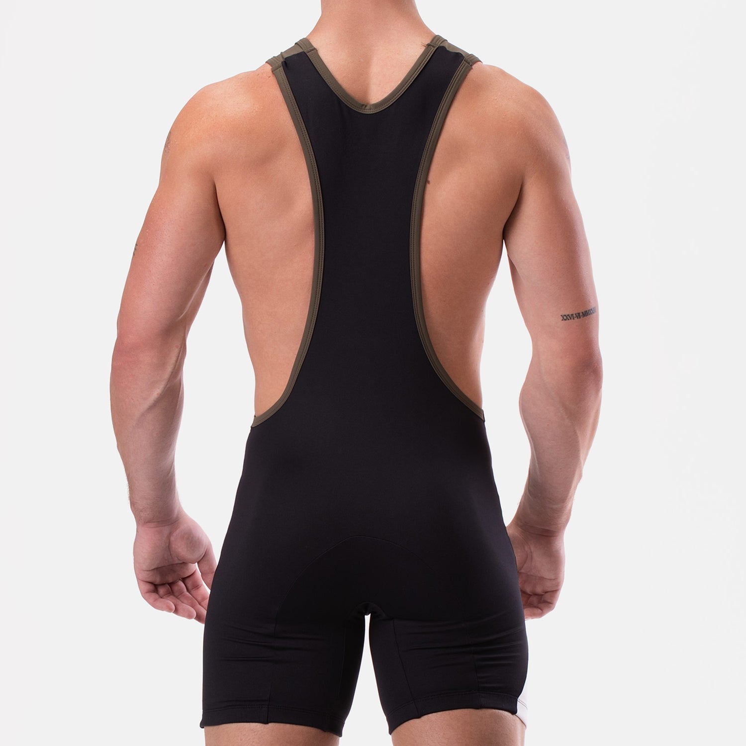 The ever-popular Barcode Berlin Singlet Luckenwalde Dark Army White Black is a striking abstract designer one-piece (no zips or cut-outs) wrestling singlet. The three bright colour contrasts on this sleek sexy lightweight piece of sports gear keeps you cool when things are getting hot.