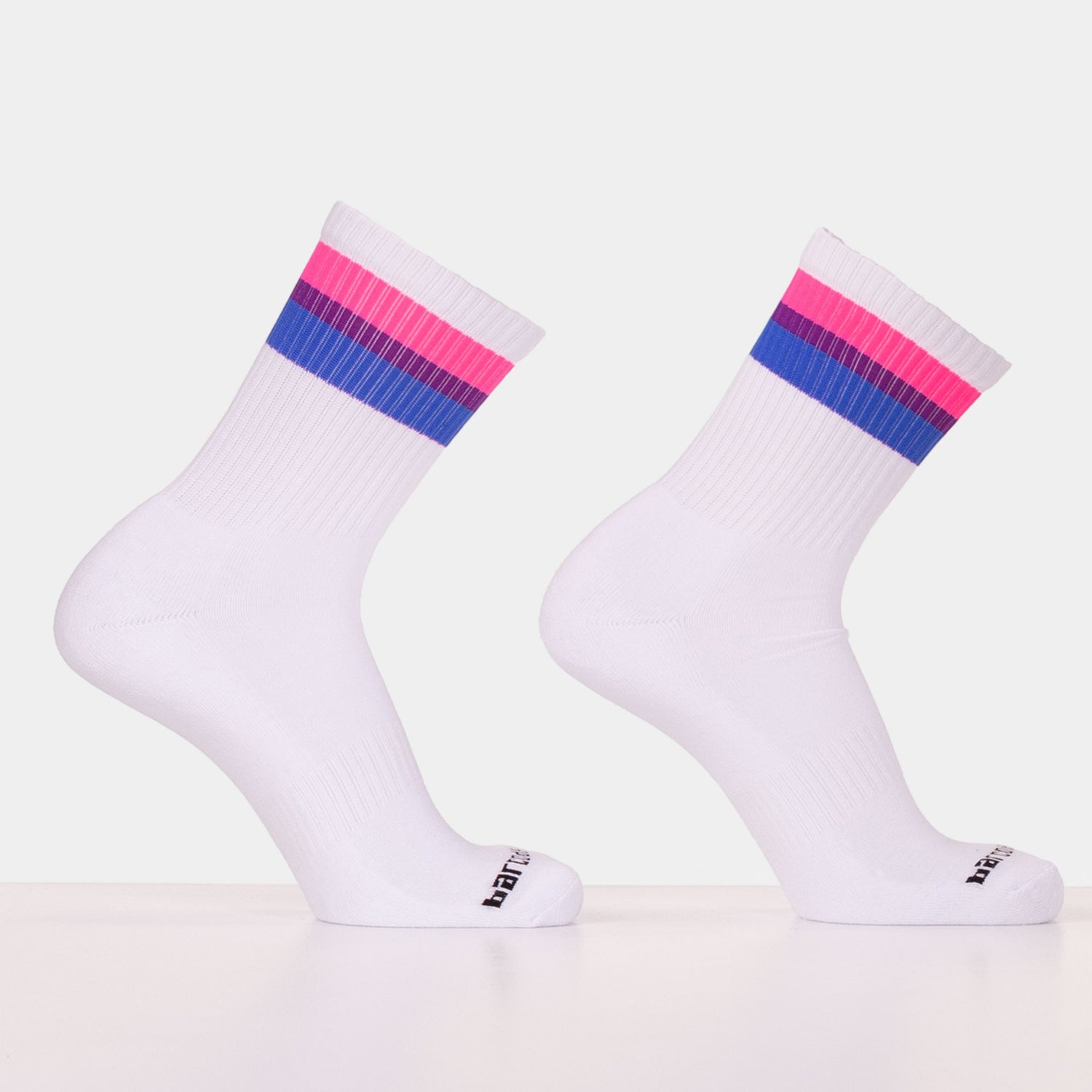 The Barcode Berlin Fetish Half Socks Bisexual White are fashionable, comfortable, and sexy. With a vibrant, contrasting design and featuring the Barcode Berlin logo. These are NOT to be kept in the sock drawer. Show them off!