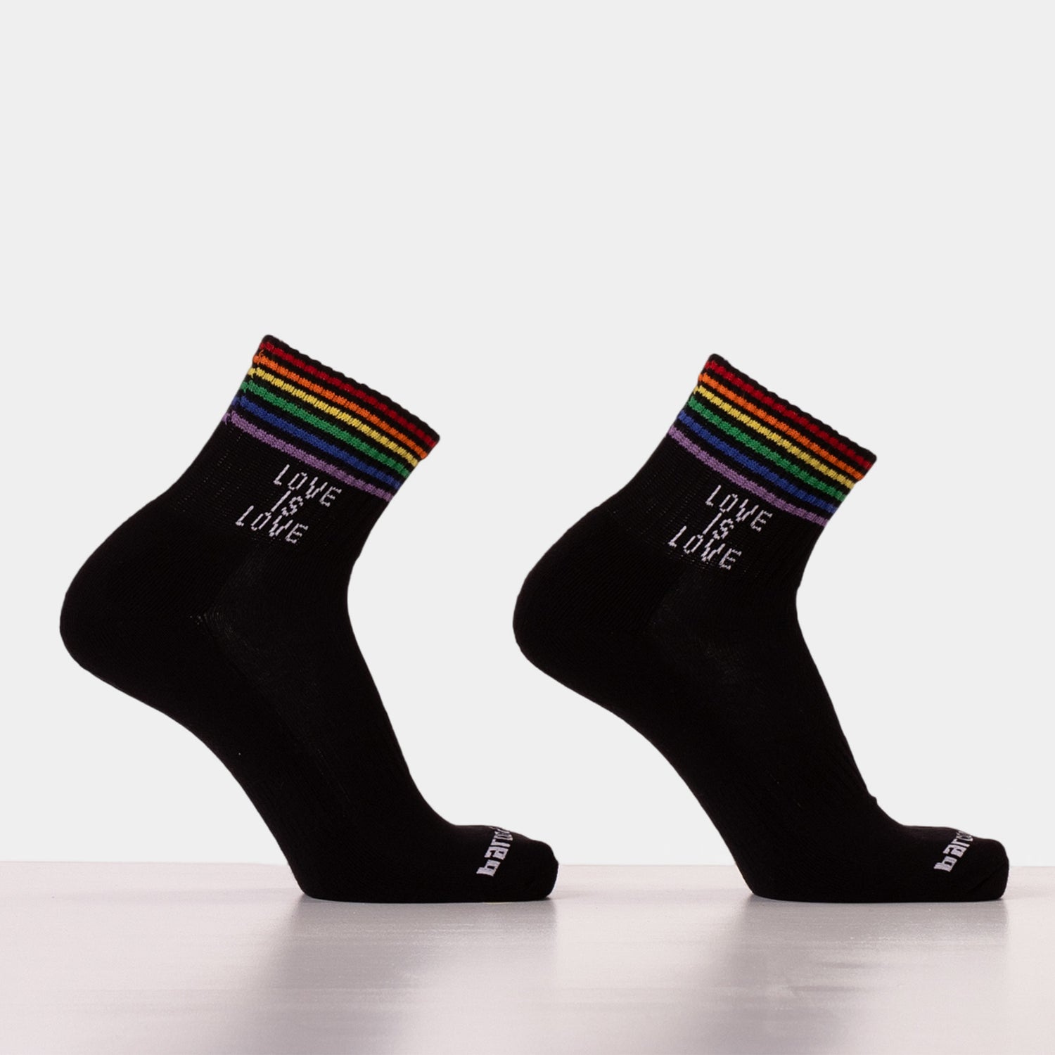 Make every step count with Barcode Berlin Half Fetish Socks Love Is Love in Black that celebrate love without apology. Featuring the iconic Love Is Love slogan against sleek black, they're your go-to for gym sessions, the club, or just cruising about!