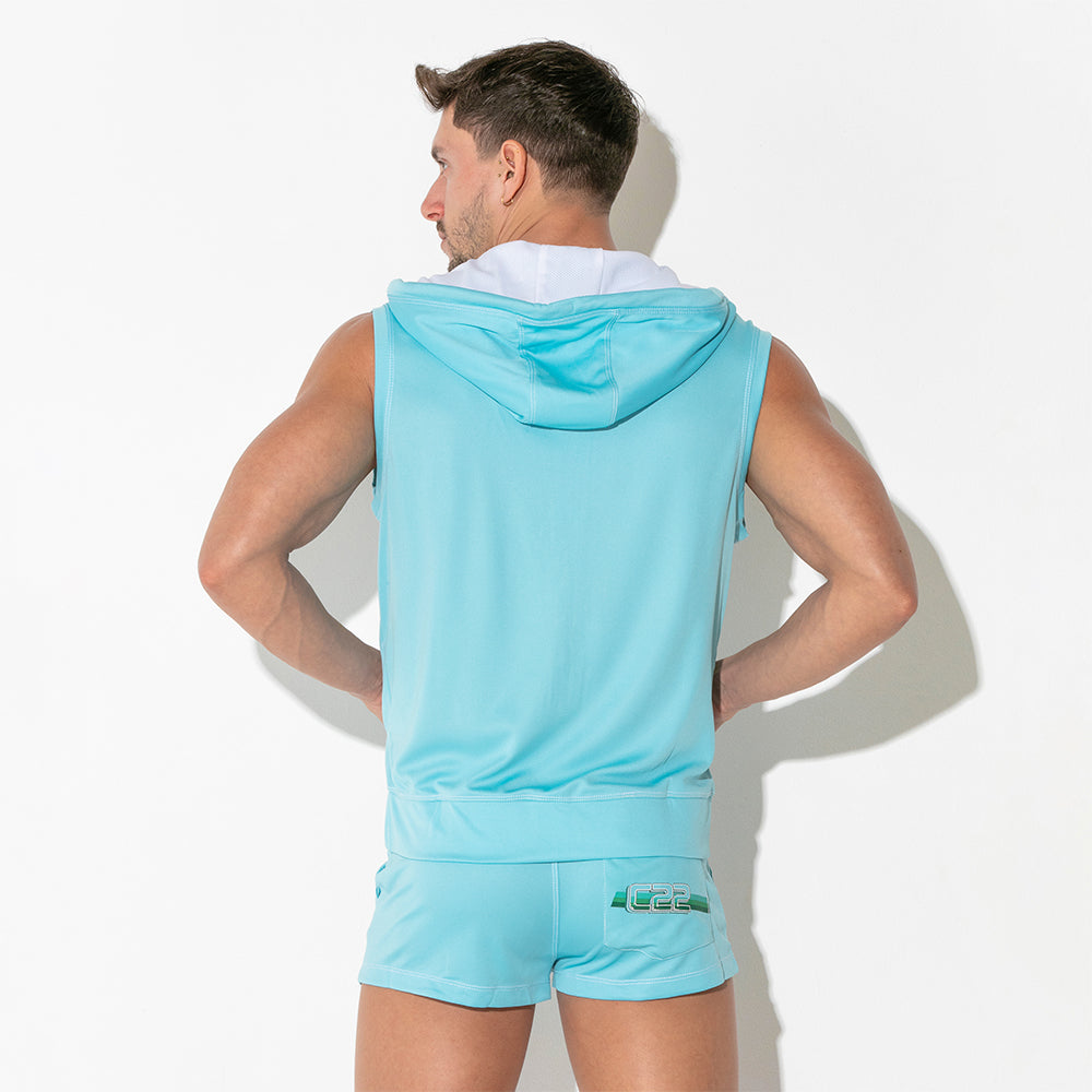 The Code 22 Motion Hoody Sky Blue; great for working up a sweat. Made from shiny quick dry fabric, this slim fit, zip through hoody features kangaroo pockets detailed with the retro Code 22 logo. The conrasting white top stiching and zip stand out against the sky blue to really help you catch eyes. Being able to wear this to the gym or to a party makes this versatile top, a must have.