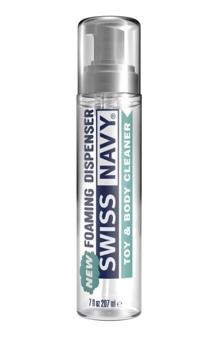 The Swiss Navy Toy & Body Foam Cleaner 221ml. Toy cleaners are an essential as sex toys are susceptible to becoming dirty and a breeding ground for bacteria if not cleaned properly.