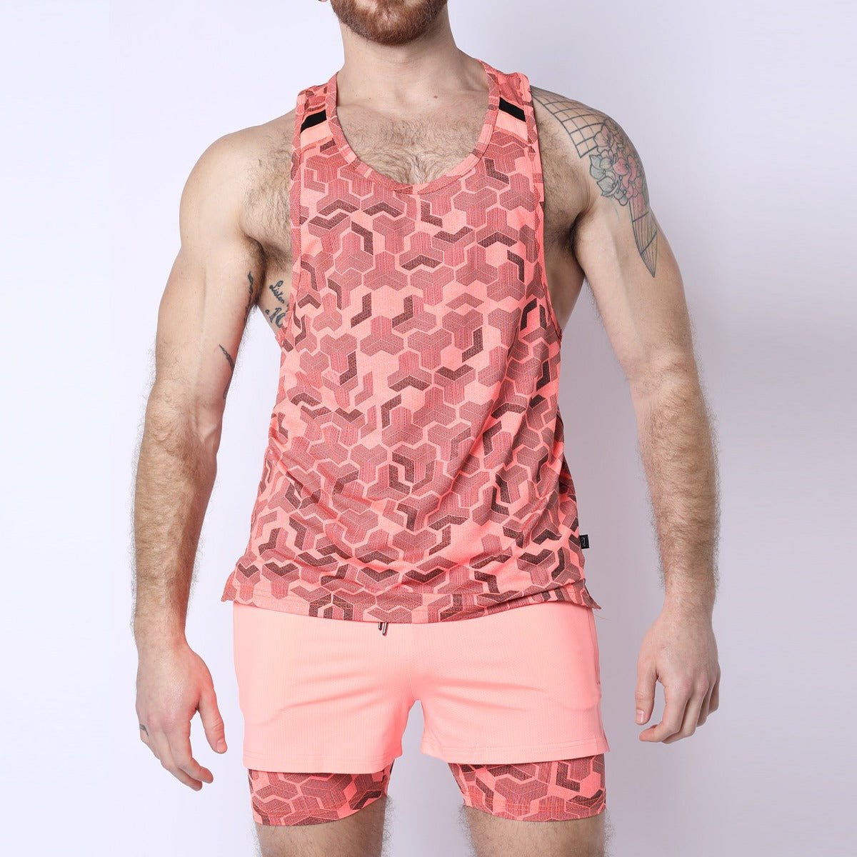 Featuring an eye-catching digital pattern, the Timoteo Letterman Tank Top Pink is crafted from high-performance silky fabric with excellent stretch and recovery. Finely perforated mesh provides sweat-proof comfort and optimum breathability for a gym look that perfectly combines style and practicality.