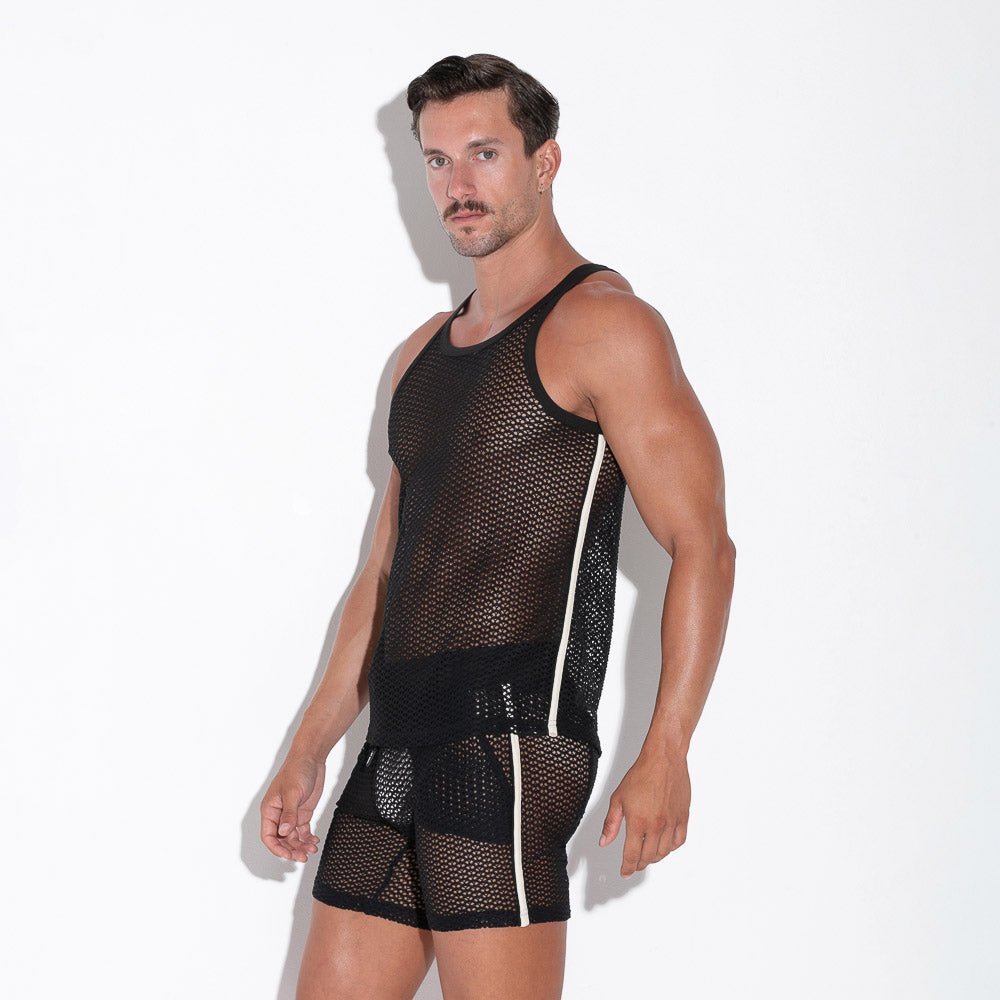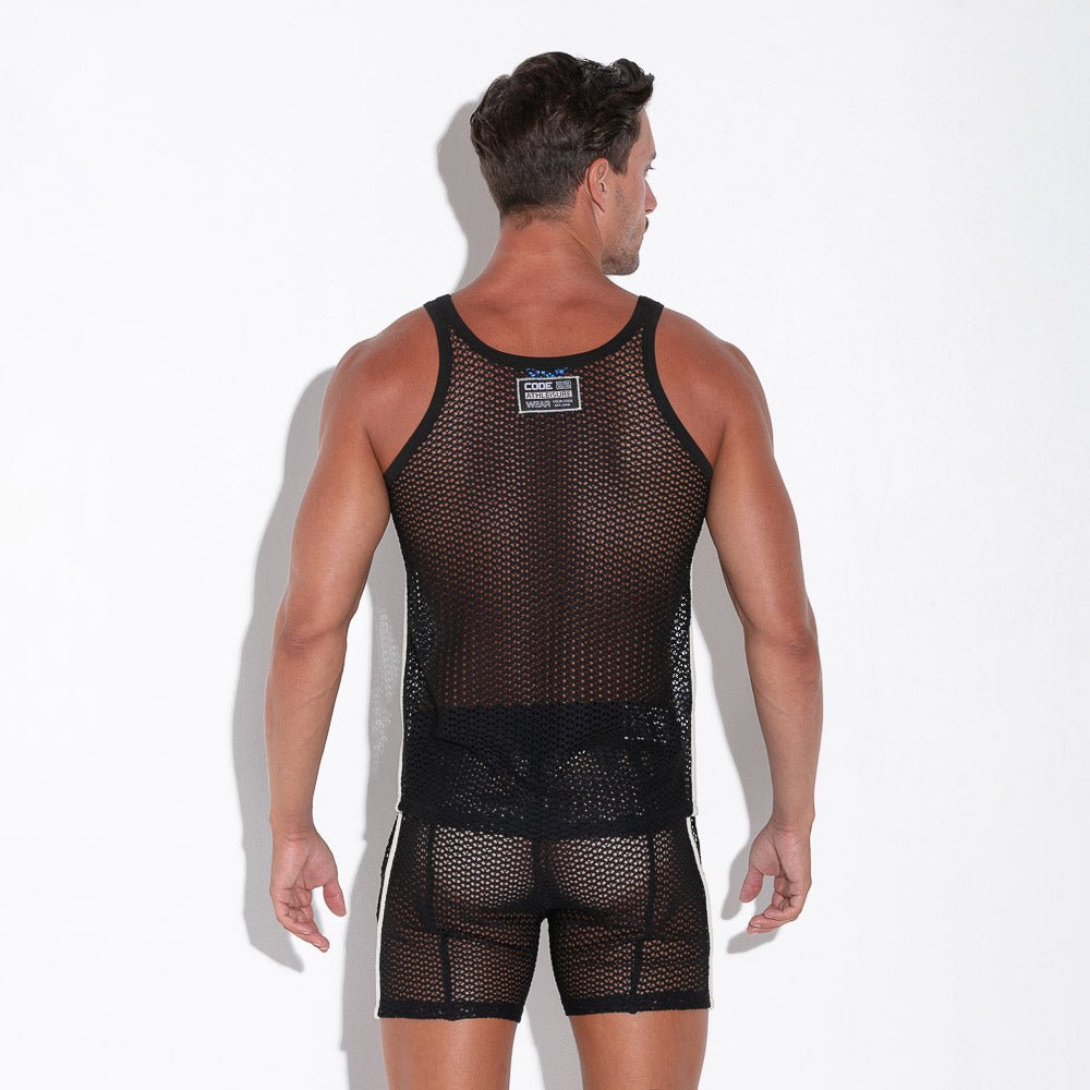 Add sporty fetish to your athleisure wear with the Code 22 Openwork Tank Top Black. The finest jacquard fabric moulds itself around you in a flattering fit that’s comfortable and stylish for the gym, the club or the playroom.