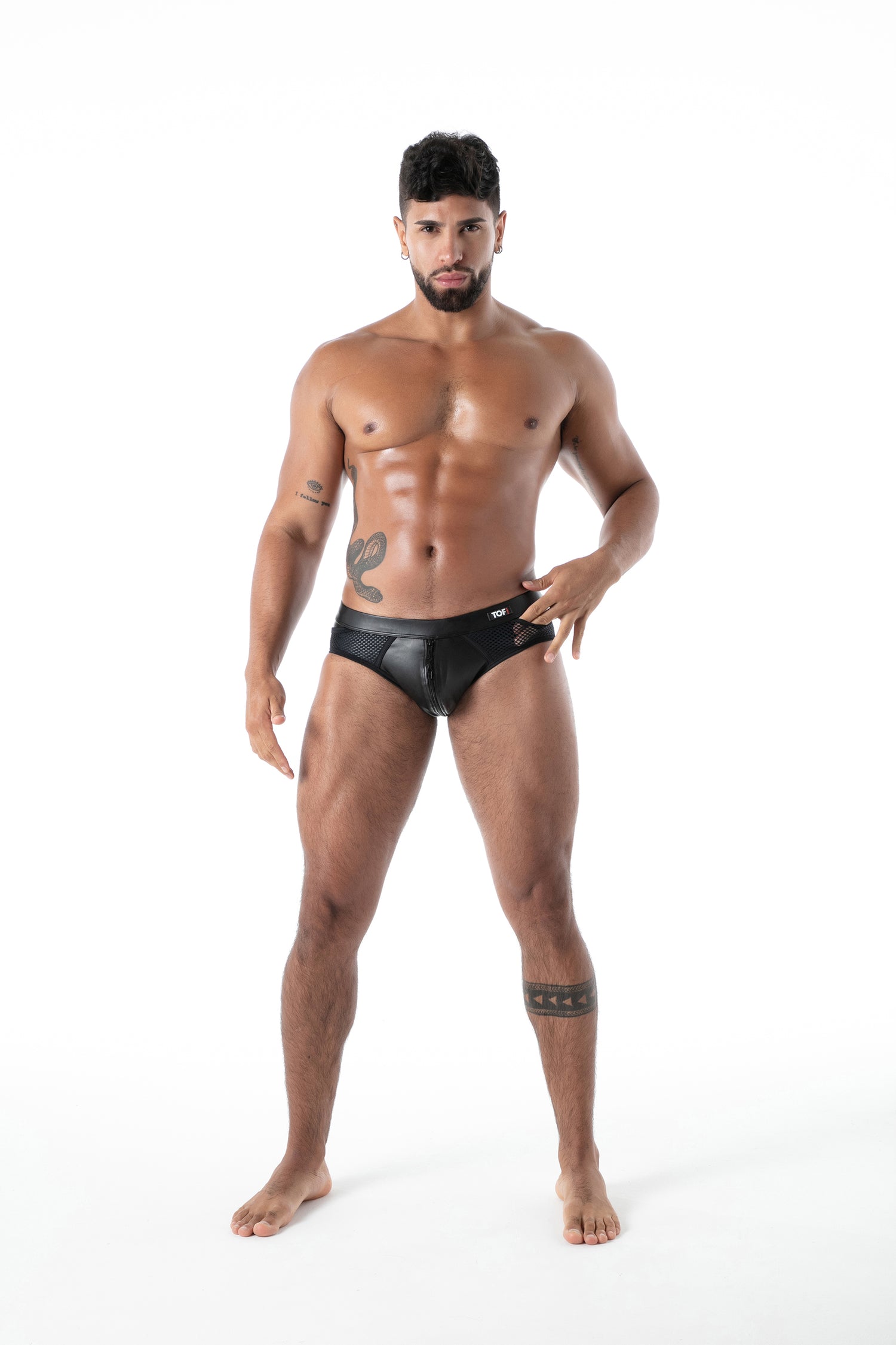 Crafted from stretch fabric with a second-skin feel, this brief moves effortlessly while maintaining a sharp, fetish-inspired edge. Mesh patch pockets add a sporty contrast, balancing sensuality with structure, while the TOF Paris silicone logo at the waistband signals refined design. Carefully and sustainably made in France, it is a piece that celebrates choice, confidence, and the quiet power of revealing only what feels right.