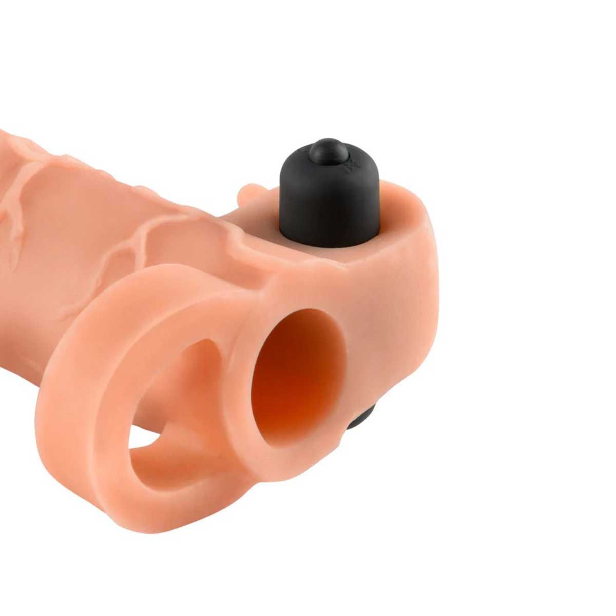 Go a little deeper with this Fantasy X Tensions Vibrating Real Feel 2 Inch Extender Light. Want to give your partner a little more? Craving extra inches from your lover? This vibrating 2 inch erection enhancer with ball strap turns your penis into an instant pleasure maker. This product was designed to help people with ED and mid session performance problems and is a safe, affordable, non-surgical alternative to medical extensions. The ball strap will help prolong ejaculation to ensure a more intense climax for both you and your lover who will seriously enjoy the pleasure zone vibrations, 33% extra girth and that all important extra inches they crave.