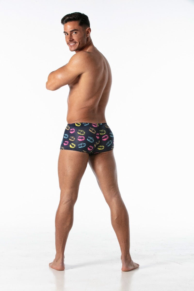 Pucker up and turn heads in these eye-catching Leader Amor Swim Sunga Navy. The unique and colourful kisses design makes these high-quality swim briefs stand out from the pack. The iconic LEADER torch logo sits proudly on your right leg while the high-quality spandex fabric is quick to dry after a dip in the pool. The white drawstring ensures a perfect fit and no annoying labels on the inside further heightens the level of comfort you’ll experience in these striking swimmers. Become a LEADER this summer!