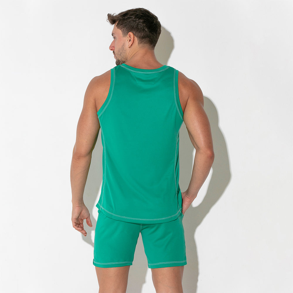 The Code 22 Motion Tank Top Sky Green, great for working up a sweat. Made from shiny quick dry fabric, this tank is versatile and functional. The conrasting white top stiching stands out against the green, with the retro Code 22 logo across the chest. The regular fit is not only on trend, but ensures you are kept comfortable in any situation.