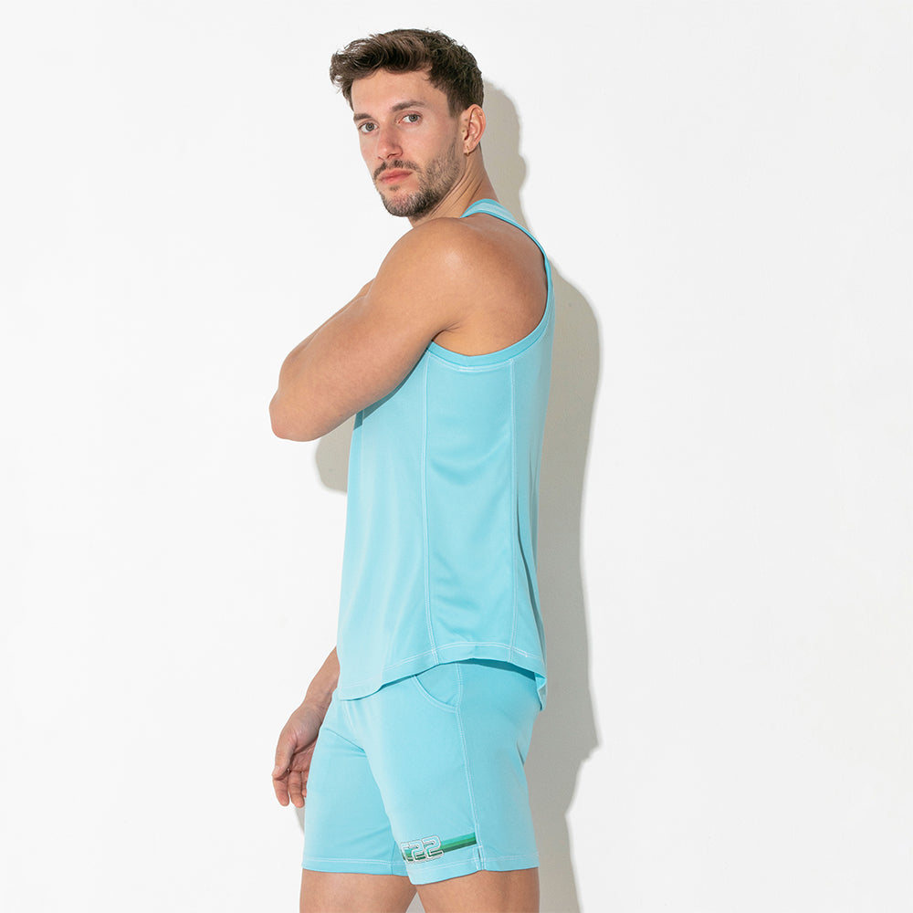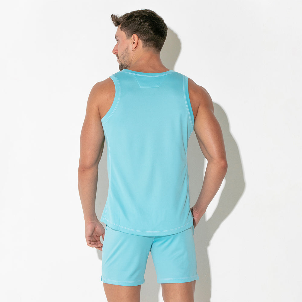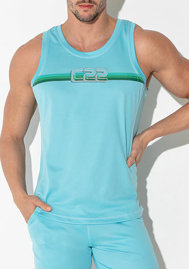 The Code 22 Motion Tank Top Sky Blue, great for working up a sweat. Made from shiny quick dry fabric, this tank is versatile and functional. The conrasting white top stiching stands out against the Sky Blue, with the retro Code 22 logo across the chest. The regular fit is not only on trend, but ensures you are kept comfortable in any situation.