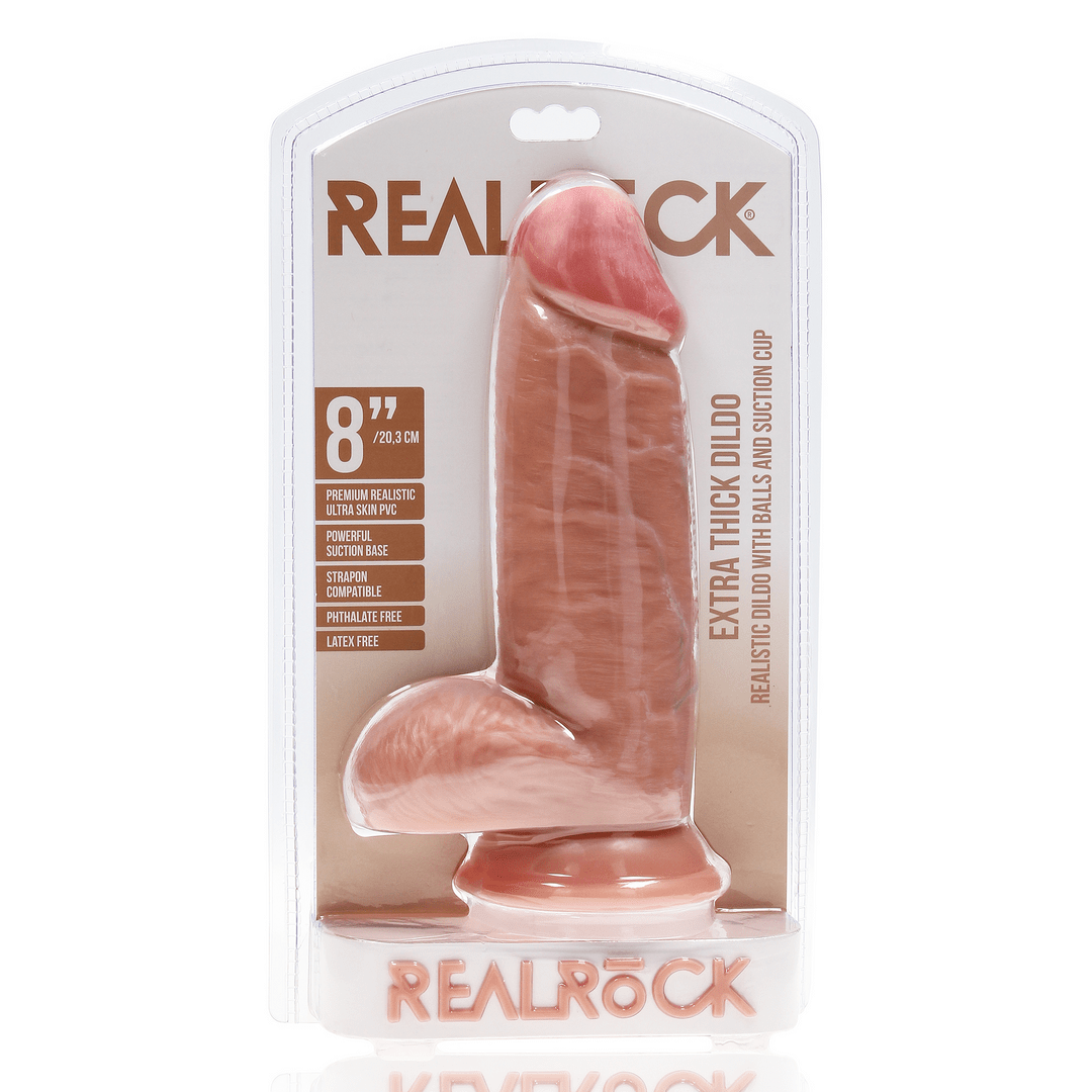 RealRock Extra Thick Dildo with Balls 8 Inch Light