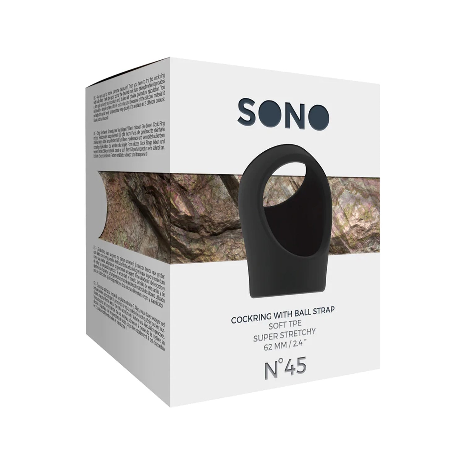 Experience intense pleasure with SONO No 45 Cock Ring with Ball Strap Black.